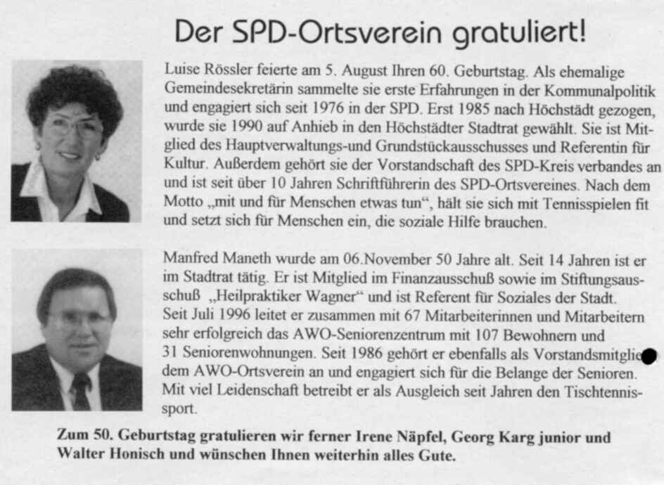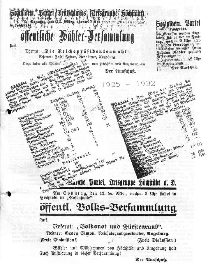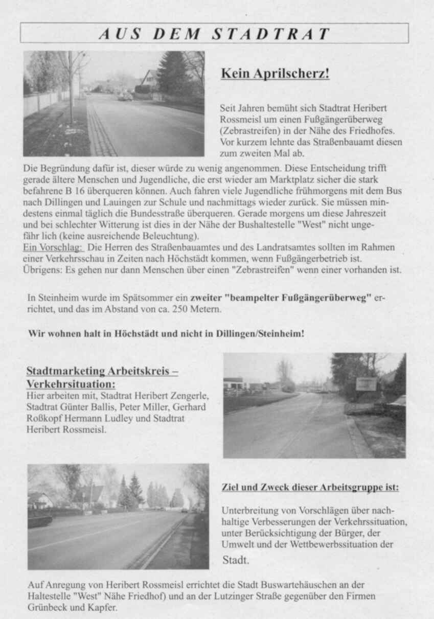 Eingangsseite Mitglieder Vorstandschaft Stadtratsfraktion Aktuelles Termine Geschichte Links Höchstädt Post an uns