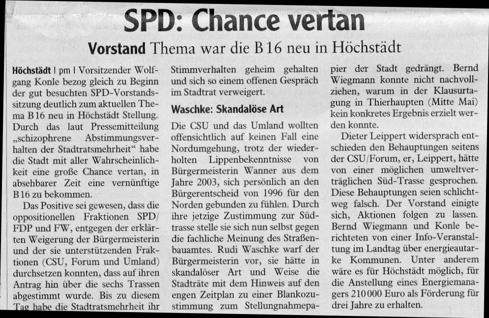12.05.2004: Unterstützung für B 16 Süd gefordert