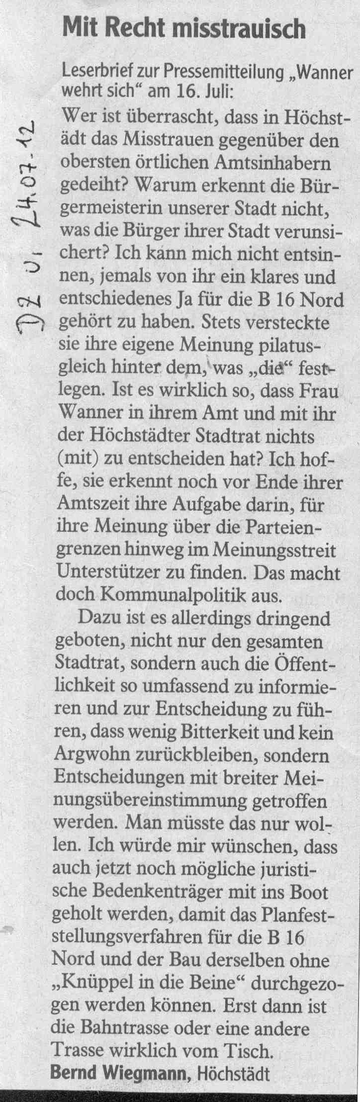 24.07.2012: Bernd Wiegmann - Zu Recht misstrauisch