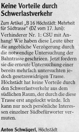 20.06.2009: Anton Schwägerl - Keine Vorteile durch Schwerverkehr