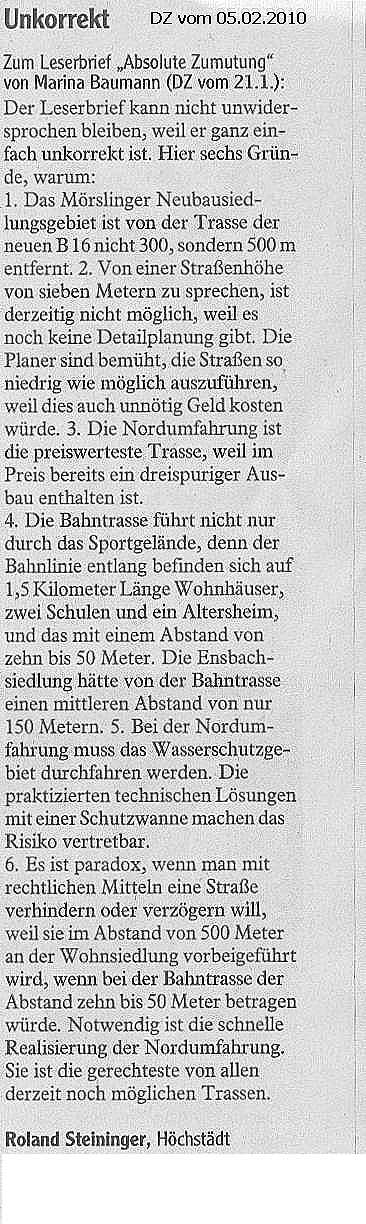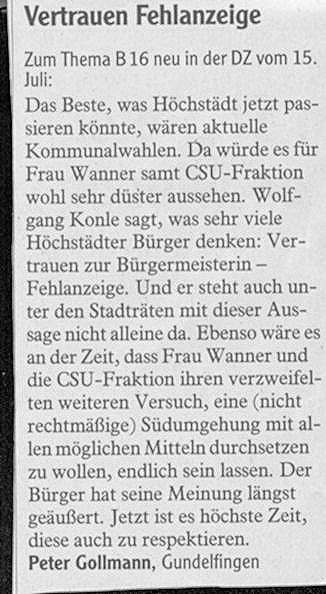 11.09.2009: Wolfgang Konle - zu "Um Umfahrung betrogen"