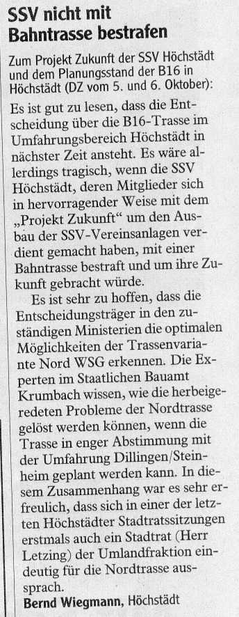 10.10.2009: Bernd Wiegmann - SSV nicht mit Bahntrasse bestrafen