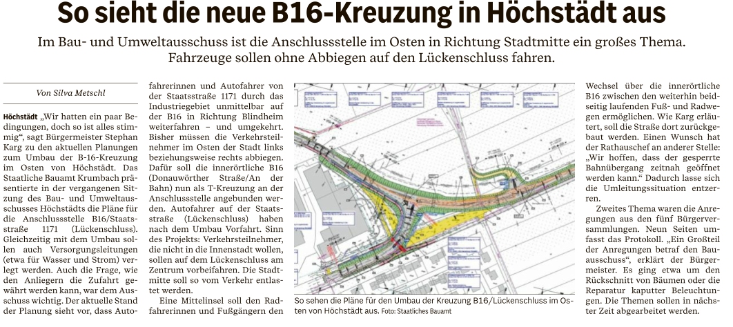 02.07.2024: B 16 Nord Höchstädt: Weiter im vordringlichen Bedarf