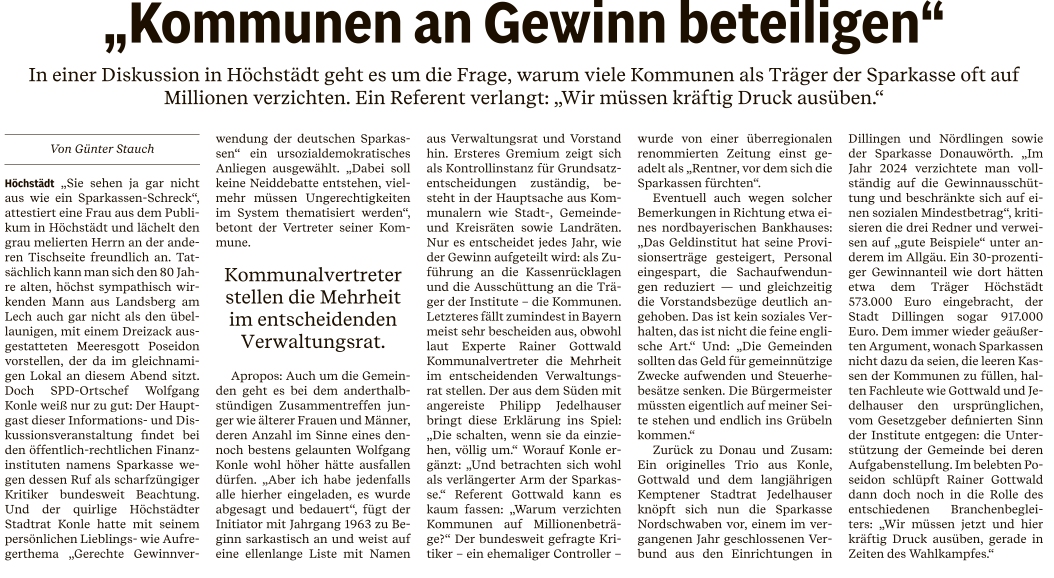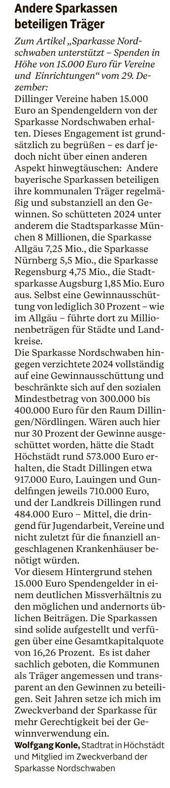 19.01.2026: Andere Sparkassen beteiligen Träger (Leserbrief Wolfgang Konle)