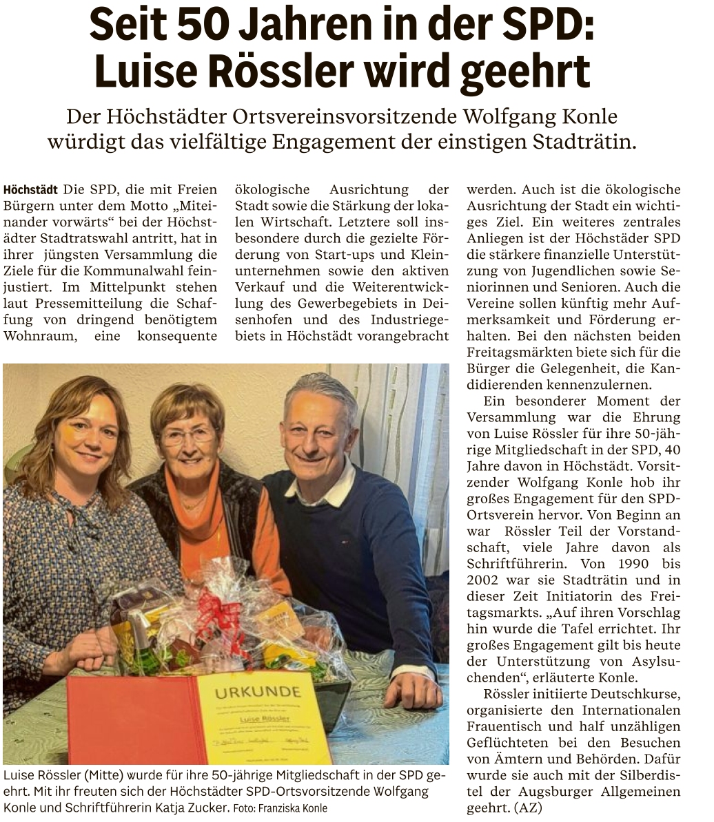 11.02.2026: Seit 50 Jahren in der SPD: Luise Rössler wird geehrt